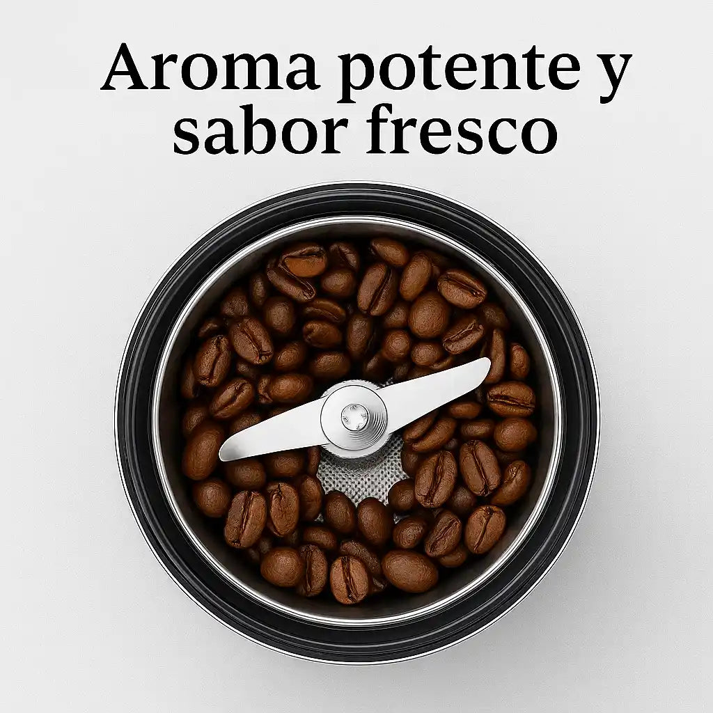 Este molinillo combina motor potente, cuchillas de acero premium y control inteligente, para lograr una molienda fina, uniforme y rapida.